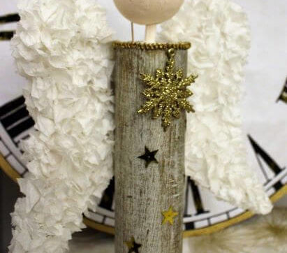 Estes anjos são uma peça de artesanato que poderá utilizar na decoração da sua casa ou como oferta de Natal. São feitos com varões de madeira antigos para cortinados e respectivas argolas. Na impossibilidade de obter estes materiais, improvise. Os nossos anjos têm aproximadamente 30 cm de altura. Materiais: Cilindro de madeira (varão); Cola quente; Cola de Silicone; Bola de esferovite; Molde de asas de … Continue a ler Anjo de Natal