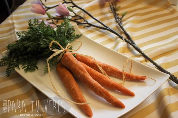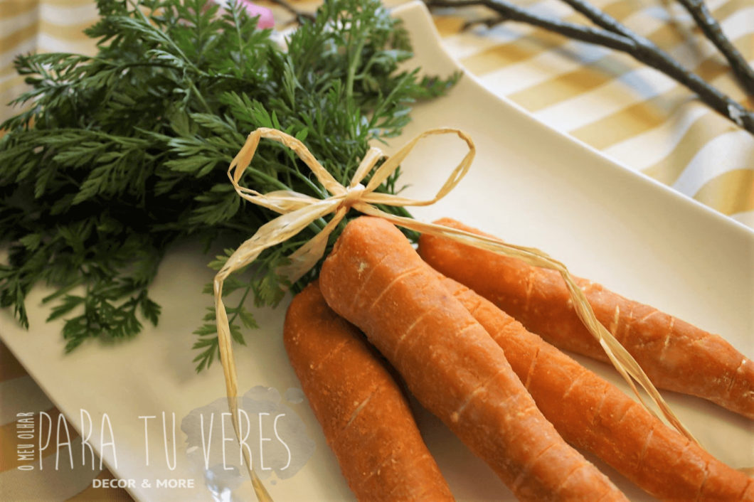 Não tenho receita específica para esta experiência. Peguei em vários queijos da minha preferência, misturei-os modelando a massa com o formato de cenouras e pincelei-as com pimentão-doce.