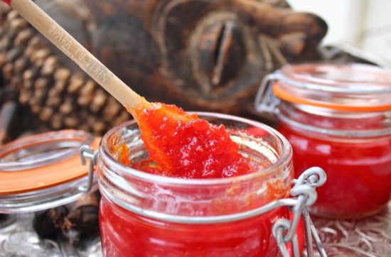 Esta geleia de Malagueta Vermelha ou pimenta Dedo-de-Moça, como é conhecida no Brasil, é uma experiência a repetir. Cá em casa adoramos comidas picantes, e quando digo picantes, refiro-me a um nível considerado anormal/excessivo pelo comum dos mortais. O meu pai fazia habitualmente as suas refeições mordiscando uma malagueta, que colocava ao lado do prato, e hoje dou por mim a repetir o padrão. Nas … Continue a ler Geleia de Malagueta Vermelha