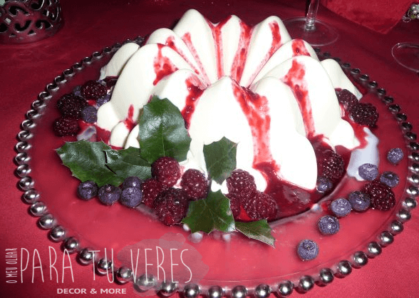Assim que solidificar desenforme ainda congelado e deixe no frigorífico algumas horas. Certifique-se que ao servir, a panacota não está congelada.